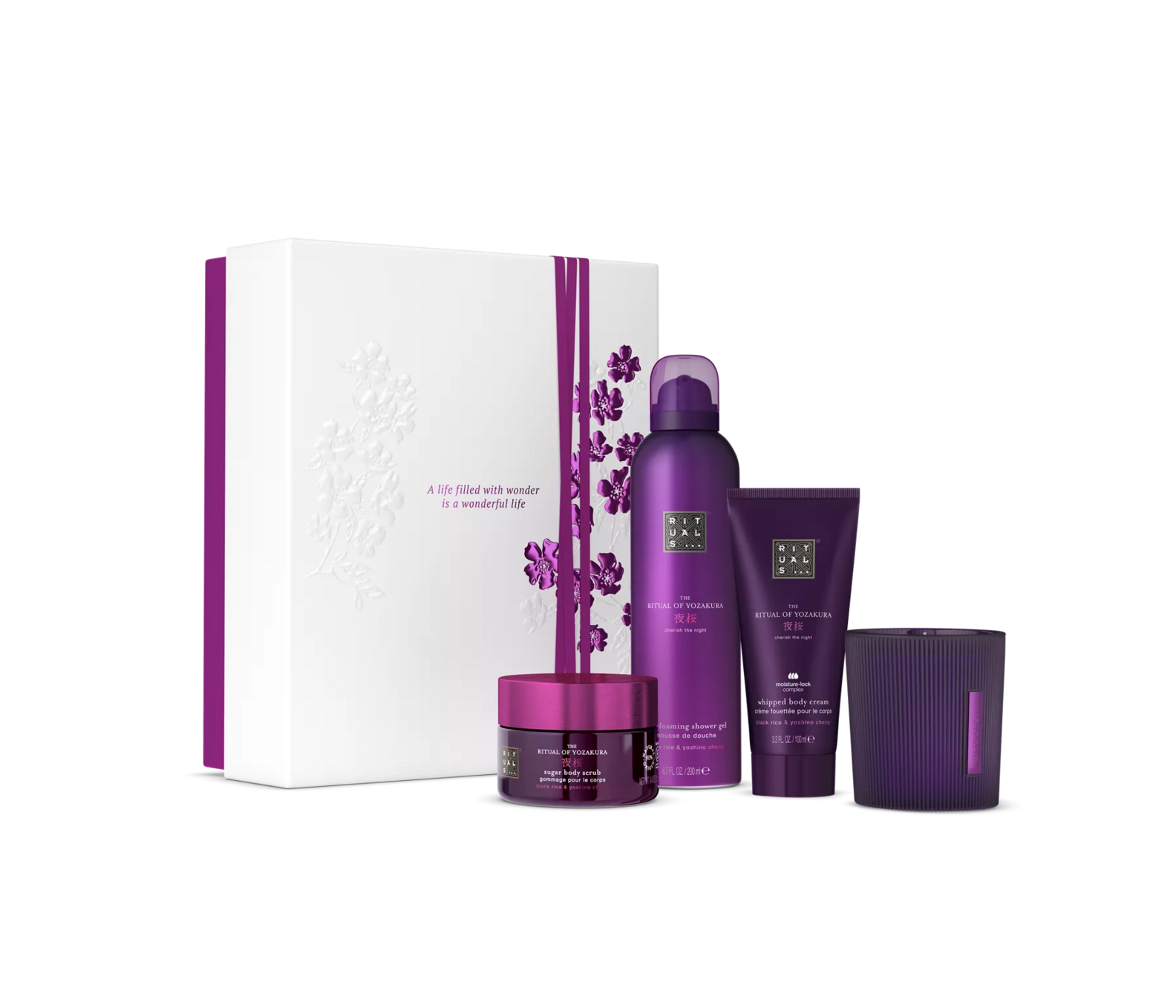 • Полный уход – гель для душа, крем, скраб и ароматическая свеча создают комплексный ритуал ухода за телом.